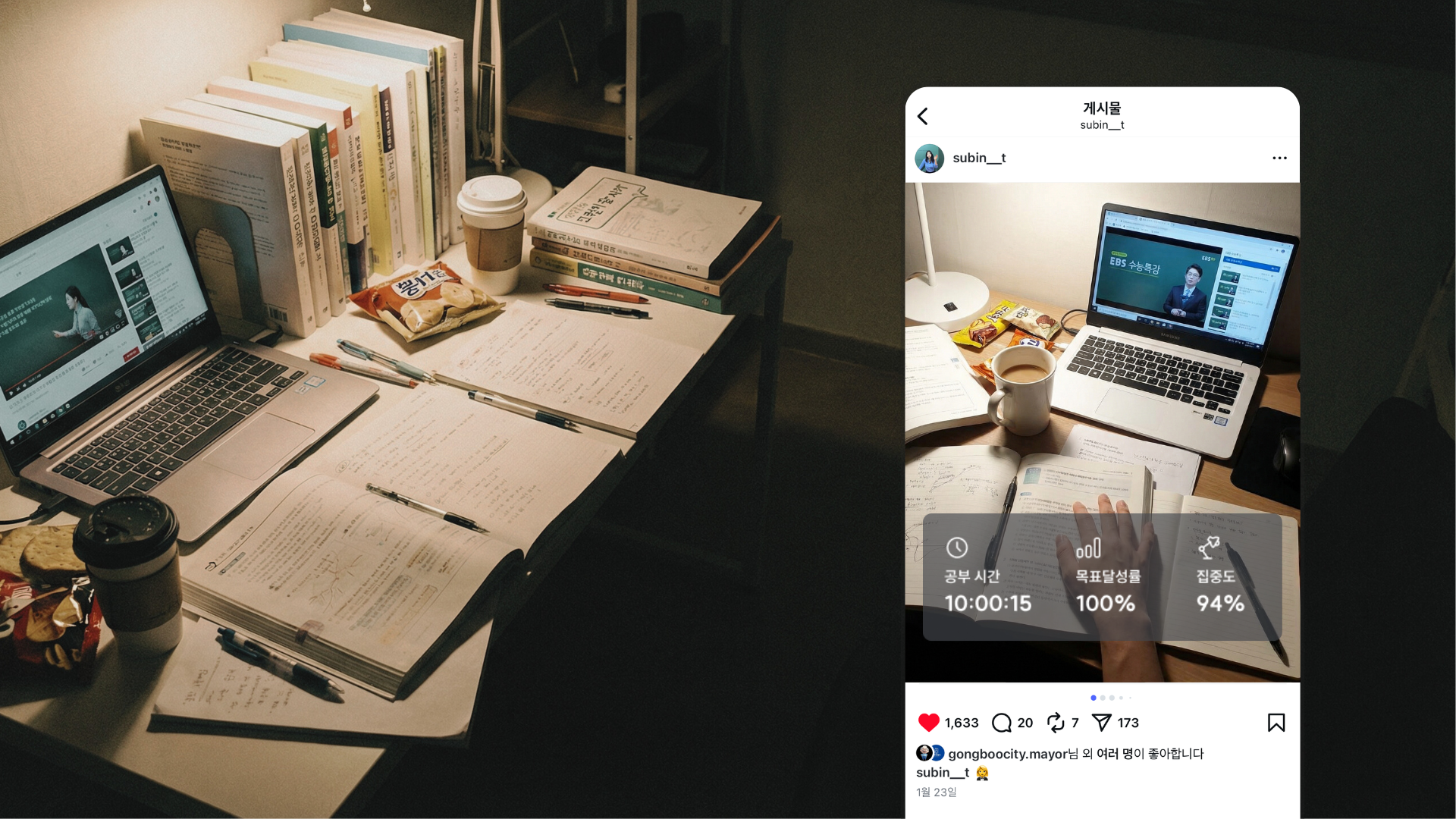 1) 집중력을 높이는 AI를 통해, 불필요한 시간 낭비를 줄이고, 순공시간을 늘릴 수 있습니다.